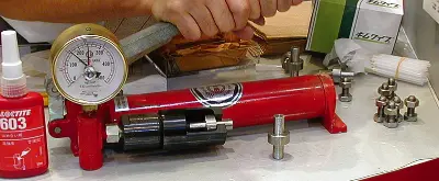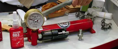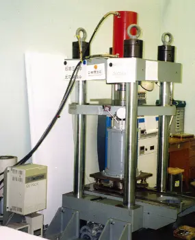 高低圧比例リリーフ弁を用い段階的にポンプの圧力を変化させ車体の歪みを測定【MP-6型 100kNシリンダー使用】